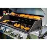 για εύκολη μεταφορά και μεγάλο θερμόμετρο στο καπάκι, δίσκο συγκράτησης λίπους, ειδική σχάρα διατήρησης θερμοκρασίας. Επίσης διαθέτει 2 ράφια στις